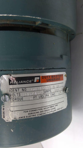 60 Hz TE Footless----Reliance Brake 602455-18-B UX 230/460 B Torque 6 FT. LBs 1 Ph 60 Hz ----Used---Good Visual Condition---Tested---E-Ok---05/23/WW----JLM