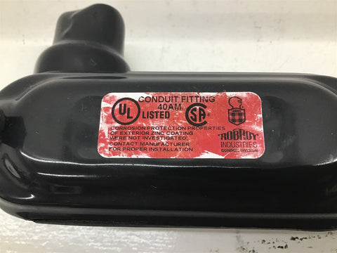Rob Roy Conduit fitting 40AM Return Policy Returns accepted within 30 days. Items sold as is cannot be returned, unless description is in error. Buyer pays return freight. Shipping Policy We ship almost all items with 1 business day of cleared payment. We ship USPS and UPS. We can ship on your account. If you will be shipping freight, please be sure to provide all delivery contact information including a phone number. We will need to know if you have a fork lift or dock.
