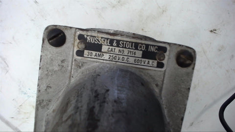 RUSSELL & STOLL 7114 30 AMP, 250 VDC, 600 VAC RECEPTACLE Return Policy Returns accepted within 30 days. Items sold as is cannot be returned, unless description is in error. Buyer pays return freight. Shipping Policy We ship almost all items with 1 business day of cleared payment. We ship USPS and UPS. We can ship on your account. If you will be shipping freight, please be sure to provide all delivery contact information including a phone number. We will need to know if you have a fork lift or dock.