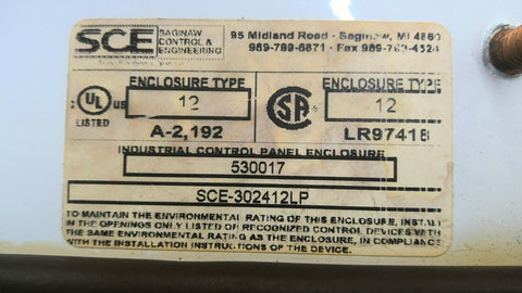 Saginaw SCE-302412LP Enclosure 30x24x12 Type 12Used--Good Visual Condition-6/24LBCC 153238---SS289--S2-6-2-3-A---113.00