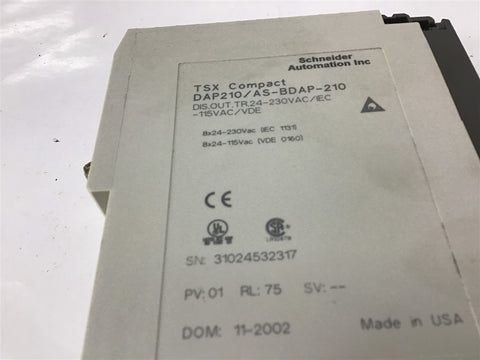 Schneider Automation 2-DEP218/AS-BDEP-218 115VAC 1-DAP210/AS-BDAP-210 Lot Of 3 Return Policy Returns accepted within 30 days. Items sold as is cannot be returned, unless description is in error. Buyer pays return freight. Shipping Policy We ship almost all items with 1 business day of cleared payment. We ship USPS and UPS. We can ship on your account. If you will be shipping freight, please be sure to provide all delivery contact information including a phone number. We will need to know if you have a fork lift or dock.