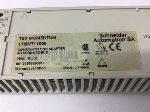 Schneider Automation TSX Momentum 170INT11000 Communication Adapter Return Policy Returns accepted within 30 days. Items sold as is cannot be returned, unless description is in error. Buyer pays return freight. Shipping Policy We ship almost all items with 1 business day of cleared payment. We ship USPS and UPS. We can ship on your account. If you will be shipping freight, please be sure to provide all delivery contact information including a phone number. We will need to know if you have a fork lift or dock.