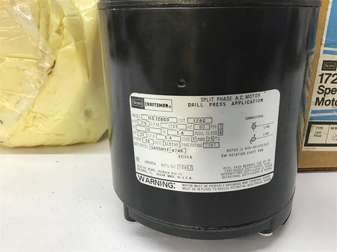 Sears Craftsman 113-12860 1725 RPM 1/4 HP 115 V AC Motor 48 Fr Return Policy Returns accepted within 30 days. Items sold as is cannot be returned, unless description is in error. Buyer pays return freight. Shipping Policy We ship almost all items with 1 business day of cleared payment. We ship USPS and UPS. We can ship on your account. If you will be shipping freight, please be sure to provide all delivery contact information including a phone number. We will need to know if you have a fork lift or dock.