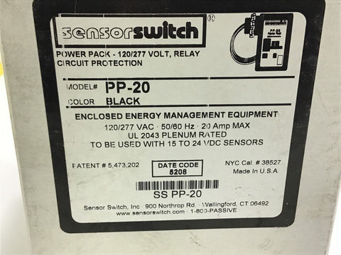 Sensor Switch PP-20 Power Pack Relay Circuit Protection 120/277 Vac Black Return Policy Returns accepted within 30 days. Items sold as is cannot be returned, unless description is in error. Buyer pays return freight. Shipping Policy We ship almost all items with 1 business day of cleared payment. We ship USPS and UPS. We can ship on your account. If you will be shipping freight, please be sure to provide all delivery contact information including a phone number. We will need to know if you have a fork lift or dock.