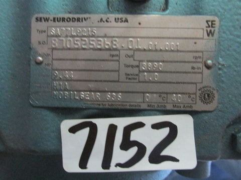 SEW EURODRIVE,--- SA77LP215---SO #870525368.01.01.001--- GEAR REDUCER,--- 3890 OP TORQUE,--- HOLLOW SHAFT,---