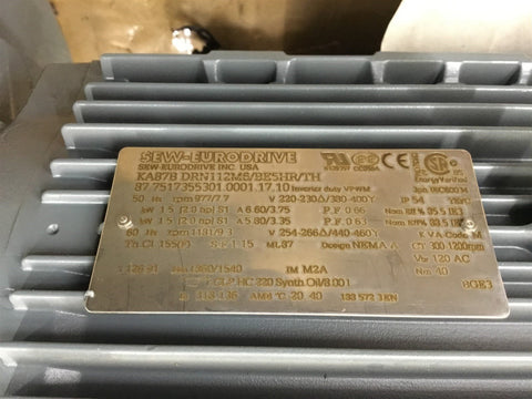 Sew-Eurodrive KA87BDRN112M6/BE5HR/TH 2 HP Gear Motor 126.91:1 Ratio 230/400 V Return Policy Returns accepted within 30 days. Items sold as is cannot be returned, unless description is in error. Buyer pays return freight. Shipping Policy We ship almost all items with 1 business day of cleared payment. We ship USPS and UPS. We can ship on your account. If you will be shipping freight, please be sure to provide all delivery contact information including a phone number. We will need to know if you have a fork lift or dock.
