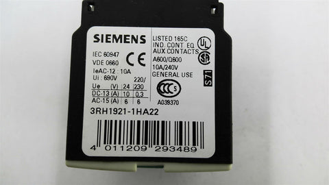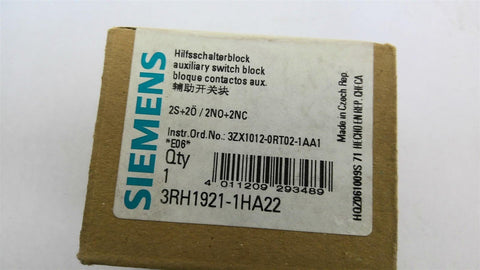 Siemens 3RH121-1HA22Auxiliary Switch Block Payment Policy Payment through PayPal or Contact Brooks Motor & Electric for Credit Card approval. Return Policy Returns accepted within 30 days. Items sold as is cannot be returned, unless description is in error. Buyer pays return freight. Shipping Policy We ship almost all items within 1 business day of cleared payment in the United States. We ship USPS, UPS, and Ebay Global Shipping Program. We can ship on your account only in the Unites States. If you will be shipping freight, please be sure to provide all delivery contact information including a phone number. We will need to know if you have a fork lift or dock. International shipments do not apply to this. Shipments will be handled through Ebay Global Shipping warehouse.