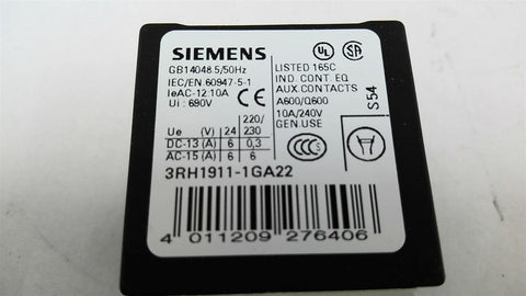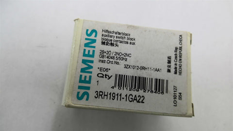 Siemens 3RH1911-1GA22 Auxiliary BlockNew Surplus--Opened Factory Box----5/24/SJMCC 152572---SS289-T-26-3-6-A---1.00
