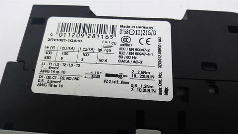 Siemens 3RV1021-1GA10 Circuit Breaker 4.5-6.3 Amp Used--Good Visual Condition---5/24LBCC 152814---SS289--T-24-3-7-A---1.00