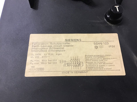 SIEMENS 5SV6 123 CIRCUIT BREAKER 160 AMP 4 POL USED---GOOD VISUAL CONDITION----8/19/ WH070323---SS192--G-1-6-2-A---14.00