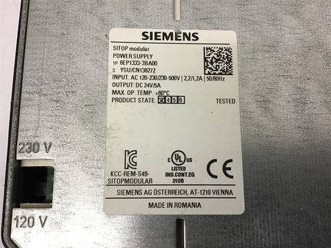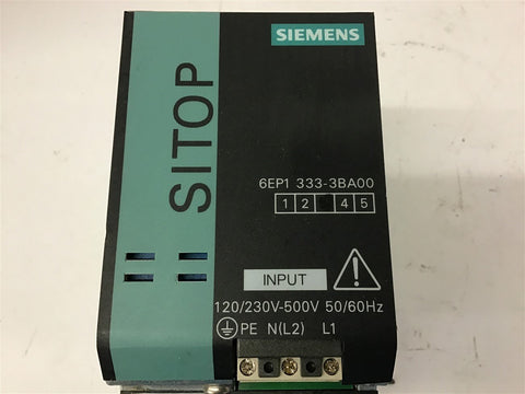 Siemens 6EP1 333-3BA00 120/230 V-500 Volts Power supply Return Policy Returns accepted within 30 days. Items sold as is cannot be returned, unless description is in error. Buyer pays return freight. Shipping Policy We ship almost all items with 1 business day of cleared payment. We ship USPS and UPS. We can ship on your account. If you will be shipping freight, please be sure to provide all delivery contact information including a phone number. We will need to know if you have a fork lift or dock.