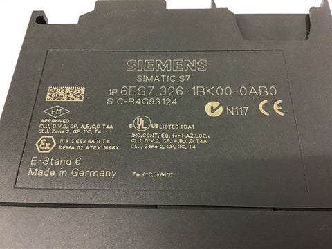 Siemens 6ES7 326-1BK00-0AB0 Digital Input Module Return Policy Returns accepted within 30 days. Items sold as is cannot be returned, unless description is in error. Buyer pays return freight. Shipping Policy We ship almost all items with 1 business day of cleared payment. We ship USPS and UPS. We can ship on your account. If you will be shipping freight, please be sure to provide all delivery contact information including a phone number. We will need to know if you have a fork lift or dock.