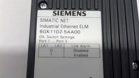 Siemens 6GK1102-5AA00 Simatic Net Industrial Ethernet ELM Return Policy Returns accepted within 30 days. Items sold as is cannot be returned, unless description is in error. Buyer pays return freight. Shipping Policy We ship almost all items with 1 business day of cleared payment. We ship USPS and UPS. We can ship on your account. If you will be shipping freight, please be sure to provide all delivery contact information including a phone number. We will need to know if you have a fork lift or dock.