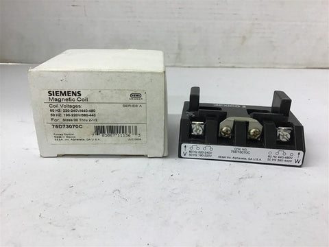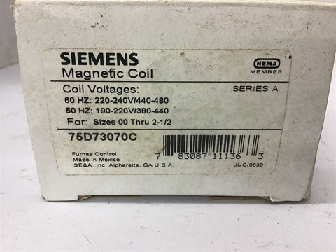 Siemens 75D73070C Magnetic Coil 220/-240/440-480 Volts Return Policy Returns accepted within 30 days. Items sold as is cannot be returned, unless description is in error. Buyer pays return freight. Shipping Policy We ship almost all items with 1 business day of cleared payment. We ship USPS and UPS. We can ship on your account. If you will be shipping freight, please be sure to provide all delivery contact information including a phone number. We will need to know if you have a fork lift or dock.