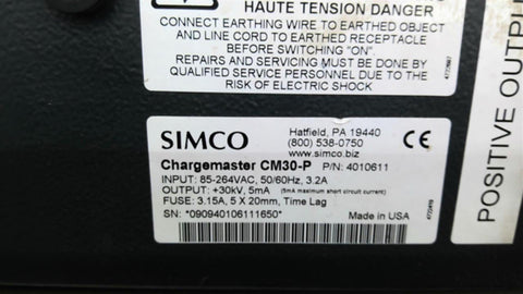 Simco CM30-P Chargmaster VCM 5 Ma Return Policy Returns accepted within 30 days. Items sold as is cannot be returned, unless description is in error. Buyer pays return freight. Shipping Policy We ship almost all items with 1 business day of cleared payment. We ship USPS and UPS. We can ship on your account. If you will be shipping freight, please be sure to provide all delivery contact information including a phone number. We will need to know if you have a fork lift or dock.