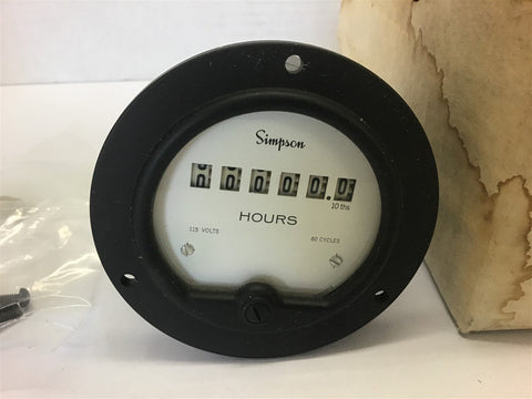 Simpson 03580 elapsed time Indicator 115 Volts Hour Meter Return Policy Returns accepted within 30 days. Items sold as is cannot be returned, unless description is in error. Buyer pays return freight. Shipping Policy We ship almost all items with 1 business day of cleared payment. We ship USPS and UPS. We can ship on your account. If you will be shipping freight, please be sure to provide all delivery contact information including a phone number. We will need to know if you have a fork lift or dock.