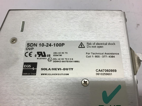 SOLA Power Supply SDN 10-24-100P 24VDC 10A Return Policy Returns accepted within 30 days. Items sold as is cannot be returned, unless description is in error. Buyer pays return freight. Shipping Policy We ship almost all items with 1 business day of cleared payment. We ship USPS and UPS. We can ship on your account. If you will be shipping freight, please be sure to provide all delivery contact information including a phone number. We will need to know if you have a fork lift or dock.