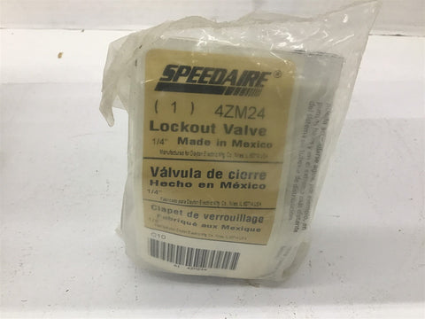 Speedaire 4ZM24 Lockout Valve 1/4" Return Policy Returns accepted within 30 days. Items sold as is cannot be returned, unless description is in error. Buyer pays return freight. Shipping Policy We ship almost all items with 1 business day of cleared payment. We ship USPS and UPS. We can ship on your account. If you will be shipping freight, please be sure to provide all delivery contact information including a phone number. We will need to know if you have a fork lift or dock.