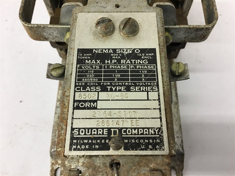 Square D 8502 B0-80 Nema Size 0 440 volts 2 Hp single Phase 115 V coil Return Policy Returns accepted within 30 days. Items sold as is cannot be returned, unless description is in error. Buyer pays return freight. Shipping Policy We ship almost all items with 1 business day of cleared payment. We ship USPS and UPS. We can ship on your account. If you will be shipping freight, please be sure to provide all delivery contact information including a phone number. We will need to know if you have a fork lift or dock.
