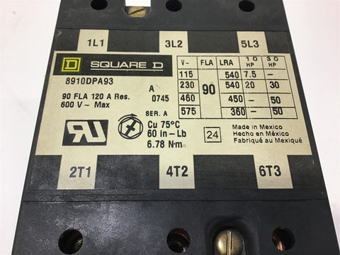 Square D 8910DPA93 Contactor 460V @ 50 Hp 120 V cCoil