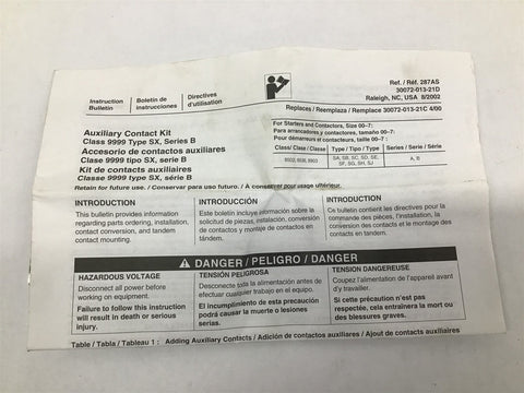 Square D 9999SX6 Series B Type S N O Electrical Interlock Return Policy Returns accepted within 30 days. Items sold as is cannot be returned, unless description is in error. Buyer pays return freight. Shipping Policy We ship almost all items with 1 business day of cleared payment. We ship USPS and UPS. We can ship on your account. If you will be shipping freight, please be sure to provide all delivery contact information including a phone number. We will need to know if you have a fork lift or dock.