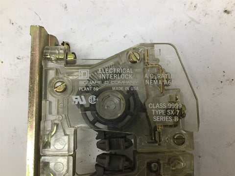 Square D Class 9999 Type SX-6 Ser. B Electrical Interlock Return Policy Returns accepted within 30 days. Items sold as is cannot be returned, unless description is in error. Buyer pays return freight. Shipping Policy We ship almost all items with 1 business day of cleared payment. We ship USPS and UPS. We can ship on your account. If you will be shipping freight, please be sure to provide all delivery contact information including a phone number. We will need to know if you have a fork lift or dock.