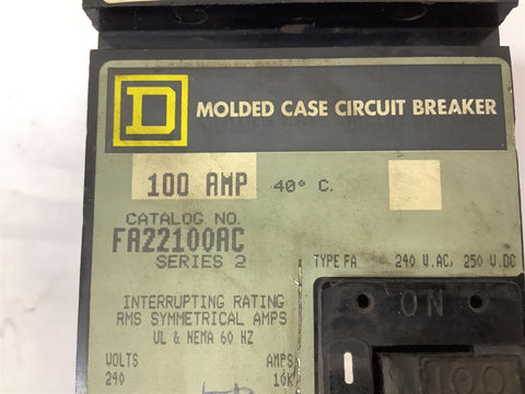 Square D FA22100AC 100A Circuit Breaker Return Policy Returns accepted within 30 days. Items sold as is cannot be returned, unless description is in error. Buyer pays return freight. Shipping Policy We ship almost all items with 1 business day of cleared payment. We ship USPS and UPS. We can ship on your account. If you will be shipping freight, please be sure to provide all delivery contact information including a phone number. We will need to know if you have a fork lift or dock.