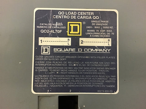 Square D QO2-4L70F Single Phase QO Load Center 240 V Return Policy Returns accepted within 30 days. Items sold as is cannot be returned, unless description is in error. Buyer pays return freight. Shipping Policy We ship almost all items with 1 business day of cleared payment. We ship USPS and UPS. We can ship on your account. If you will be shipping freight, please be sure to provide all delivery contact information including a phone number. We will need to know if you have a fork lift or dock.