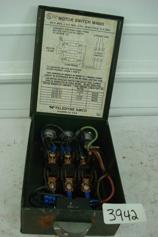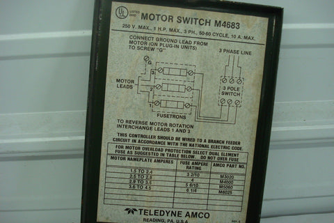 Teledyne Amco 1 Hp Motor Drive Switch Box M4683 250 V, 10 Amp,3 Ph,50-60 Hz