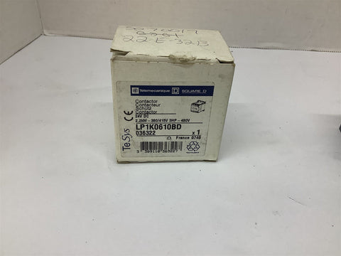 Telemecanique LP1K0610BD Contactor 24 VDC 3 HP 480 V Return Policy Returns accepted within 30 days. Items sold as is cannot be returned, unless description is in error. Buyer pays return freight. Shipping Policy We ship almost all items with 1 business day of cleared payment. We ship USPS and UPS. We can ship on your account. If you will be shipping freight, please be sure to provide all delivery contact information including a phone number. We will need to know if you have a fork lift or dock.