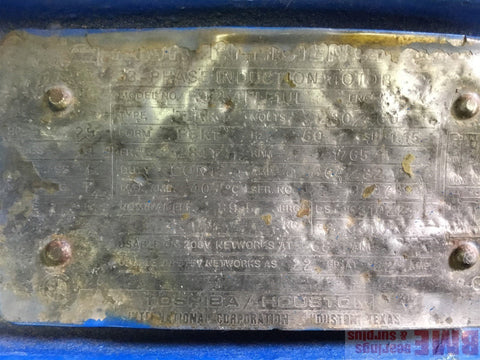 MOTOR DATA: TOSHIBA 25 HP, 4POLE, 1725 RPM, 230/460 VOLTS, -----PUMP DATA 1750 RPM, 125 MAX WORK PRESSURE, 4" X 4"--- USED---GOOD VISUAL CONDITION----6/18/JC