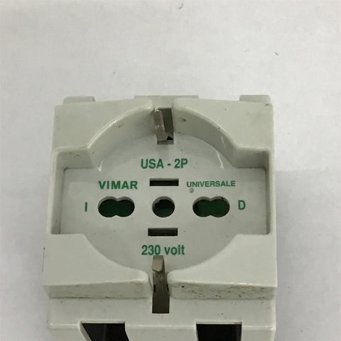 VIMAR USA-2P Universale 230 Volt Receptacle Din Rail Mount Return Policy Returns accepted within 30 days. Items sold as is cannot be returned, unless description is in error. Buyer pays return freight. Shipping Policy We ship almost all items with 1 business day of cleared payment. We ship USPS and UPS. We can ship on your account. If you will be shipping freight, please be sure to provide all delivery contact information including a phone number. We will need to know if you have a fork lift or dock.