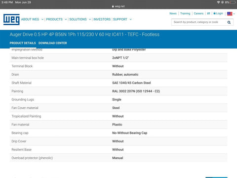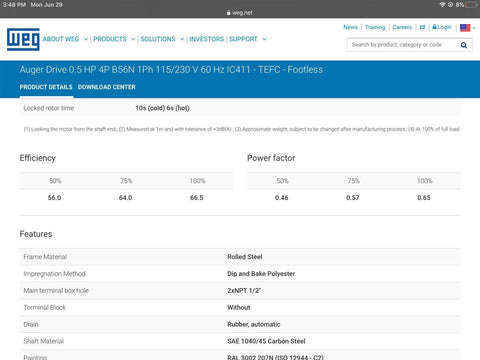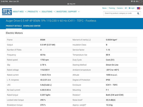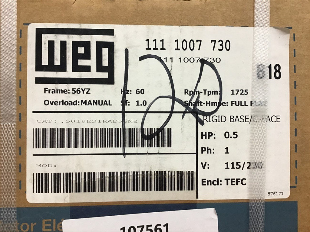 Weg .5018ES1RAD56NZ 1/2 HP AC Motor 115/230 V 1725 Rpm 56YZ Frame TEFC Return Policy Returns accepted within 30 days. Items sold as is cannot be returned, unless description is in error. Buyer pays return freight. Shipping Policy We ship almost all items with 1 business day of cleared payment. We ship USPS and UPS. We can ship on your account. If you will be shipping freight, please be sure to provide all delivery contact information including a phone number. We will need to know if you have a fork lift or dock.