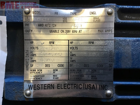 WESTERN ELECTRIC 1DN 20 HP AC MOTOR 208-230/460 VOLTS, 3544 RPM, 4P, 256T FRAME