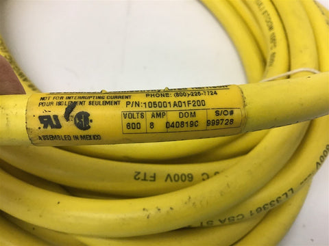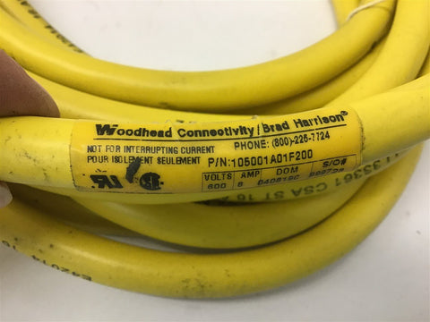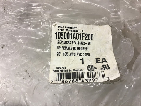 Woodhead 105001A01F200 5P Female 90 Degree 20' 16/5 AWG Return Policy Returns accepted within 30 days. Items sold as is cannot be returned, unless description is in error. Buyer pays return freight. Shipping Policy We ship almost all items with 1 business day of cleared payment. We ship USPS and UPS. We can ship on your account. If you will be shipping freight, please be sure to provide all delivery contact information including a phone number. We will need to know if you have a fork lift or dock.